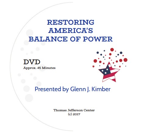 This DVD is a presentation by Dr. Glenn J. Kimber, President of the Thomas Jefferson Center for Constitutional Restoration. The vital principles in the U.S. Constitution are being threatened, if not destroyed, and Dr. Kimber explains why the Constitution must be restored to the Founding Father’s original intent and purpose in order to save our nation. 45 minutes.